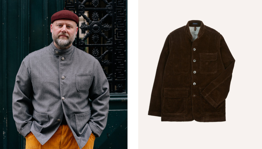 Κατασκευάστηκε από τον Léon Grimbert τον συνιδιοκτήτη του οίκου ανδρικής ένδυσης Arnys στο Παρίσι, έναν κορυφαίο ράφτη εκείνης της εποχής, που θεωρείται δημιουργός του περίφημου ρούχου. Ο Le Corbusier είχε ζητήσει ένα άνετο, κομψό σακάκι εργασίας και ο Grimbert δημιούργησε ένα σακάκι από κοτλέ ύφασμα, χωρίς βάτες και με άνετα-χαλαρά μανίκια. Ο συγκεκριμένος οίκος, εκείνη την εποχή έντυνε την παρισινή διανόηση της Αριστερής Όχθης (Rive Gauche) με εναλλακτικές και intellectual προτάσεις σε σχέση με το κλασικό βαρετό στυλ που επικρατούσε. Μάλιστα, τα δύο αδέρφια Grimbert, ιδιοκτήτες του ατελιέ, είχαν εισαγάγει εξαιρετικής ποιότητας αγγλικά κασμίρια και tweed υφάσματα, αλλά διέθεταν και μια τολμηρή χρωματική ματιά που σε συνδυασμό με τις αναμφισβήτητες γνώσεις τους στη ραπτική τέχνη, τους είχαν τοποθετήσει στις υψηλότερες θέσεις των κατά παραγγελία ανδρικών ενδυμάτων στο Παρίσι.