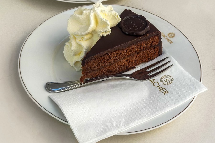 Ταιριαστός σύντροφος του καφέ είναι οι γλυκές λιχουδιές. Στην κορυφή των προτιμήσεών μου βρέθηκε το απόλυτα εθιστικό Kaiserschmarrn – ένα χρυσαφένιο και «σπασμένο» σε κομμάτια pancake με ελάχιστες, βουτηγμένες σε ρούμι, σταφίδες και κομψά καραμελωμένη επιφάνεια. Όταν μπει στο πιάτο, πασπαλίζεται με ζάχαρη άχνη και σερβίρεται με ζεστή κομπόστα δαμάσκηνων με ρούμι αλλά και σαντιγί, για όσους το επιθυμούν. Ιδρυμένο το 1786, το Café Demel (φωτό επάνω) θεωρείται ένας από τους πιο γνωστούς και σεβαστούς «ναούς» για Kaiserschmarrn στην πόλη ενώ γευστικότατο είναι και το μεστό apfelstrudel (μηλόπιτα). Εμφανίζεται και αυτό με ένα διάφανο σχεδόν μανδύα ζάχαρης άχνης και συνοδεύεται από ζεστή σος βανίλια. Στο Café Sacher, έχοντας φόντο την Όπερα της Βιέννης, δοκίμασα την εμβληματική Sachertorte (φωτό κάτω) – ένα πλούσιο, πυκνό κέικ σοκολάτας με πολύ λεπτή στρώση μαρμελάδας βερίκοκο στο εσωτερικό και σοκολατένιο γλάσο στην επιφάνειά του που σερβίρεται με άγλυκη σαντιγί. Αν και λάτρης της σοκολάτας, με κέρδισε η αέρινη Malakofftorte με στρώσεις από σαβαγιάρ, σαντιγί και αμύγδαλο.